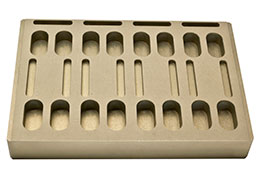 Conduits or guides that carry formed material by each of the machine stations in an aligned and centered way. They are made of aluminum plus an anodized coating to prevent stains on white thermoformed materials.